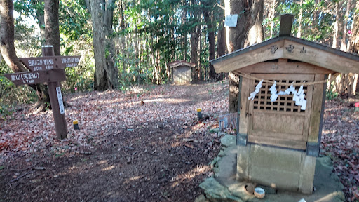 頂上に着くと、周りは木が生い茂っているので眺望は望めませんでした。 頂上には雷電山と書かれた祠が祀られています。 雷電社の後ろにも、もう一つの祠が祀られてました。 ここから堂山(天王山)には1.7kmで行けるようです。 ですが、この日は猛暑日ということもあり体力消耗してたので雀...