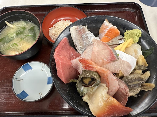 Read more前回は特上刺身定食を頼んだのですが、今回は海鮮丼を頼みました。刺身の量は凄くて写真に写らない刺身の下にも重なって量はあります。そして味も新鮮で凄く美味しいです。ただご飯の量が少な過ぎました。最初から刺身に対して少しずつご飯を摘んで食べたのですが、それでも最後は刺身だけ残ってしまいます。普通に食べるのなら+50円出してご飯を大盛りにした方が良いと思います。ただ大盛りの量は異常に多そうなので注意が必要です。ただ味は間...