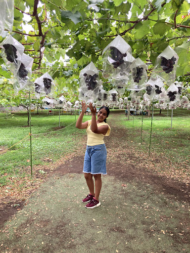 自宅から電車で行っても、それほど遠くはないので子供2人と妻の計4人で行きました。 東所沢から歩いて20分ぐらいの場所にあります。 入園料が大人200円、小学生100円、幼稚園児は入園料掛からず。 試食用のぶどうを頂き、早速中に入りました🎵 中に入ると、ぶどうの説明があります。 本日は種有と種無の巨峰2品種のみでした☺ ぶどうに被さってる紙を開きながら、ぶどうの色や形を確認しなから、美味しそうな実をハサミでチョキン😃✂✨🍇 子供達も妻も楽しそうにやっていました🎵 ここは食べ放題ではなく、量り売りなので狩り過ぎにはご注意。 4房で3000円越えのお値段でした☺ ただ、実がしっかりとしており、弾力性あり、スーパーで売ってる物とは明らかに鮮度は違いました🎵 200円で販売してる果汁100%のぶどうジュースも美味しかった🎵 受付でぶどう販売してるので、お土産でシャインマスカットを買いました🎵 試食出てるので味を確かめながら買うことができます🎵 是非、一度は行ってみてください🎵 あっ、園内にはブランコや砂場等の小さな子供が飽きな...