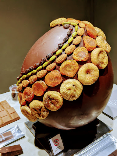 今回台の中央にひときわ目立っていたのが写真のフルーツを飾った大きな丸いチョコレート、『イースターエッグ』をモチーフにしたものとのこと。