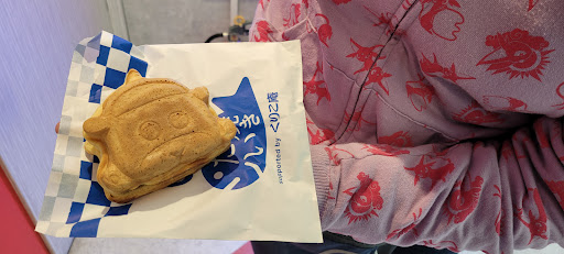 I'm going to make it easier for you and add the ticket so you know exactly who served me also it was the guy with blue hair. Additional remark, I also have blue hair it has nothing to do with it. Came here just complain about a rude server that in my opinion handled our interactions very poorly. We tried to get some Hololive tayaki from a special event. We stand in the line until it was our turn when we got there we asked for the flavour and shape we wanted. He then said that we needed a ticket and gave us a ticket for 19h00 it was 16h but we had some walking to around so all good, at this point he just spoke in japanese not trying too hard to understand what we were saying. Note that there was like 2 other people on the line so it wasn't like super packed or rushed... But still, a bit weird but fine. We came at 18:58 and since nobody was even near the line we entered the line space, he rudely said that it wasn't time yet. At this point I wanted to give up and I should have. When finally came to our turn SUDDENLY they speak English, excuse me?!?!? And said that the shape are random... so we couldn't even choose what we wanted... just the flavour... at least with all that time they could have explained beforehand how the things work since they had nothing better to to... after all the tayaki was bland not tasty... I'll not be buying event stuff ever again. I've been travelling through Japan for more than a week and I never got treated...