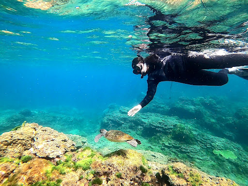 運が良ければ、港から海を眺めるだけで、目の前の海を亀が、そして沖合いには鯨やイルカが泳いでいるのを見ることも可能です。