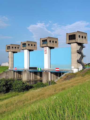 青水門の間近まで歩いて行くことができ、近くで見ると大きくて頑丈そうなことが実感できます。 アプローチする道はサイクリングロードにもなっていて、猛スピードで走るサイクリストもいるので道を横断する時は...