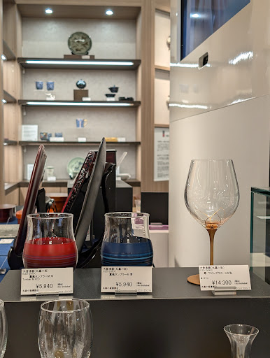 Store displaying and selling fine authentic crafts from the different prefectures across Japan. Craft types included ceramics, porcelain, wood, textile, and paper.