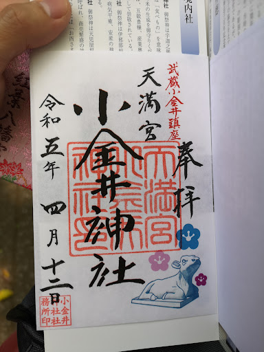 The shrine is located in a quiet residential area. The shrine precincts are not small, but covered with trees and surrounded by a quiet residential area, it's very quiet. There is a children's park next to the shrine, and the sound of children playing there can be heard in the distance. The trees provide good shade from the sun, so even in mid-summer it does not feel too hot. There are several benches scattered around the shrine grounds, so it's a good place to stop by for a rest during a stroll. One of the features of this shrine is that a millstone, a tool used in daily life to grind grain into powder, is enshrined here. The fact that such an indispensable tool for cooking is enshrined here after it has completed its role shows how deeply familiar it is with people's lives. The shrine is also called "Koganei Tenmangu Shrine," and since Sugawara Michizane is enshrined as the deity of the shrine, many students preparing for entrance exams can be seen visiting the shrine during the Hatsumode (New Year's visit) and other times of the year. There is no dedicated parking lot, so if you wish to visit the shrine by car, you must park your car inside the shrine grounds. However, it should be noted that there are no clear parking spaces within the precincts of the...