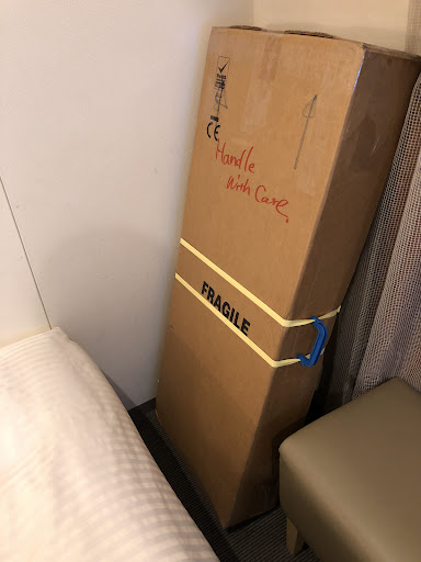 Eki then spent 30 mins helping me pack the guitar nicely in a standard guitar hard case, for which he had to add bubble wrap and paper to make sure the guitar is sitting tightly in the case so it won't get damaged while travelling on the plane. He then packed it in a cardboard box with even a handle added for comfortable carrying.