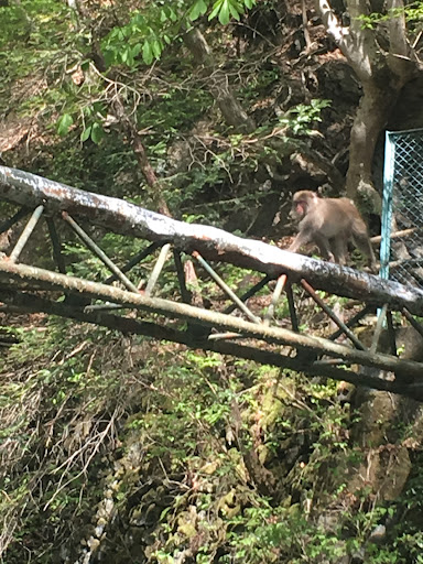 2018.4月21日、10時頃のイワナヤマメエリアの中間辺りの写真です。 まさかのお猿さん出現です。まぁこちらから何かしなければ全然安全なので嬉しい出現でしたね。近くで滅多に見れる物じゃないですし。 後、時期は忘れましたが同じ場所の斜面でニホンカモシカも見た事がありますよ。