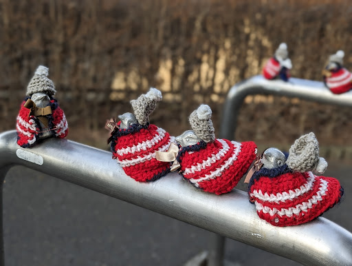 Read more穴澤天神社の河川沿いにすずめのオブジェがあるのですが、編み物で作られた服が着せられていてこの場所を...