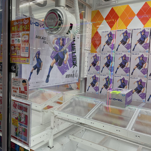 I feel like I just saw something I wasn’t supposed to. My friends and I noticed a group of 5 guys with gigantic bags clearing out the blue lock machines 40 minutes before closing. I thought they might have some crazy skills but when I went over to observe, I could not believe my eyes. 4 employees were, I kid you not, literally refilling the machines AS they were playing with assembly line level efficiency WITH THE WINDOWS OPEN!! It was absurd to watch. They had literally taken all of the most popular characters. One guy had 50+ Nagi plushies in his bag and they left a bed of unpopular characters like Kunigami and Bachira behind. I watched 20 Rin plushies go by in a minute and asked one of the employees if I could play before they ran out. I was told that they guys were “lined up until the end of the night” and no one else could use the machines. The plushies were super cute with cat ears, so I was very bummed :(