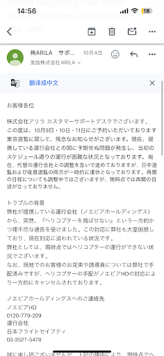 日本旅行で一番最低な経験。この会社は非常にばかげた理由で私の予約を一方的にキャンセルしました。飛行機に乗れない理由をすべて他社のせいにする。このフライトでは、メイクアップやレストランの予約など、すべてこのフライトに合わせて計画していた多くのサービスを事前に予約しました。その後、この会社は何の謝罪も補償もなく、非常に無礼に私のフライトをキャンセルしました。他の日に他の人と一緒にヘリコプターに乗ることに同意する場合は、後で私にメッセージを送った。夫婦でヘリコプターの予約をしたのですが、実はこの会社のプランでは知らない人たちと一緒にヘリコプターに乗らなければなりませんでした。ご予約の際、事前にキャンセルする場合は違約金をお支払いいただく必要がございますので、ご了承くださいと言ったが、自分がいつでも補償なしでキャンセルできる。これが日本の社会通念ですよね?誰も貴社に罰することはできません、あなたは何をしてもいいですよね?とても悪い経験でした。あなたが他人にもたらした損失は、...