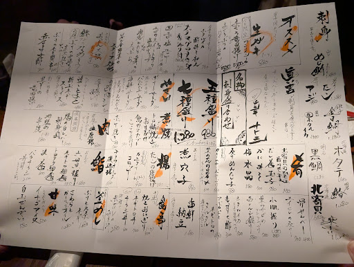 Seafood Izakaya next. Handwritten daily menu. We love sushi so adored the sashimi and sushi roll. You may think you've had good sashimi elsewhere in the world, but trust me the quality in Japan is off the scale.
