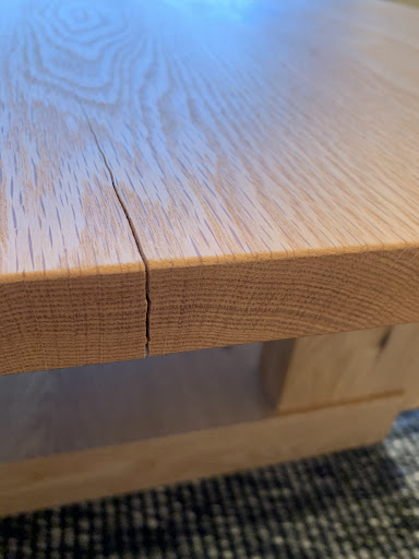 It’s true that I hadn’t oiled the wood, but (1) they never told me when I bought the table that I needed to do this, (2) I’m still surprised that a table this expensive will absolutely break unless it’s oiled, (3) if it only needs to be oiled once a year, then why would it crack when it’s much less than 1 year old, and (4) I’m still not convinced that a single oil application one time a year would stop a crack as large as 3 inches from appearing.