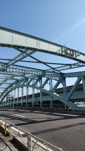 ここは歌川広重の「名所江戸百景」の1枚が描かれ、葛飾北斎の「富嶽三十六景」のうちの1枚が描かれたであろう地であり、松尾芭蕉「奥の細道」の出発地でもあり。 そして、この橋のボツボツ加減😍 リベット?よね? そう。現存する最古のブレースドリブ・タイドアーチ型鉄橋なんだそうです。 昔には鉄道も走ってたとか。