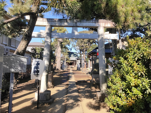 A mid-sized shrine located just north of Shakujii-Koen Station. There are several small monuments and dedicated stone lanterns, as well as two guardian dog statues. In addition to the main shrine, there are two small subsidiary shrines on the grounds.