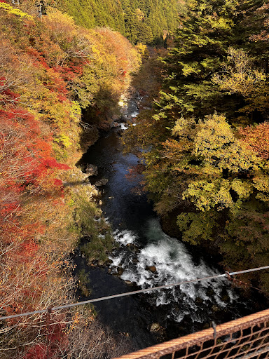 The suspension bridge is a bit old and shaky and only 2 people are allowed to go through at the same time. On the bridge, you can see the beauty of seasonal trees down along the stream. A magnificent view of autumn. You should...
