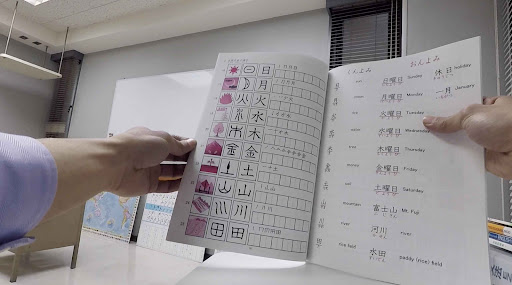 This school uses their own book and curriculum. The books are all in Japanese. In the beginning of a new unit there will be a vocabulary page consists of 60+ new words all in Japanese, you have to look all of them up on your own.