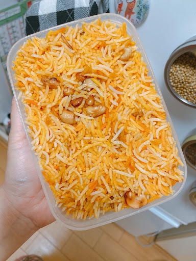 Today I just got a take out of chicken biryani , it was hangaku (only 500 yen) in celebration of Eid Al Fitr. I brought my own lunch box , I think it was quite big, I didn’t expect it but they made it full 🥹...
