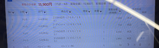 ・一つ一つ丁寧に状態や欠品の確認 ・買取金額の変動がなければそのまま持ち込んだ商品にシールを貼っても大丈夫かの確認。 ・価格に変動があった品物(主に参考価格より引かったもの)は売ってしまっても大丈夫だったかの確認。 ・参考価格2万円以上の高額な品物は1度本部や社員に確認を取るため日にちがかかる旨をお伝え下さる。 ・値段が付かなかった品物の理由を具体的に教えて頂けた。 ・持ち込んだ品物をゆっくり確認しながら出しても嫌な顔せずお待ち下さった。