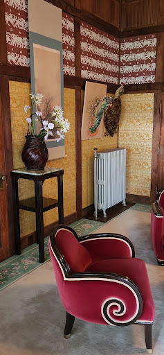 Read more近衛文麿の旧宅で、国の史跡に指定されています。その一部は豊島区内に移築されていましたが、杉並区がこの地に再移築し、2024年12月9日に一般公開されました。 建物に入るには観覧料が必要です。出入口脇の受付で300円支払います。基本的に和風住宅ですので出入口で靴を脱ぎスリッパに履き替えます。どうやらスリッパの数で観覧者の数を把握し、混雑時には入場制限をしているようです。私の行ったときは幸い待ち時間なく入れました。建物内には各部屋にガイドさんがいて、説明をしてくれました。公開初日だったので特別だったのかもしれませんがとても詳しく丁寧な説明でした。また、備え付けのタブレットでAR、VRで見る解説もありました。 見どころ1 応接室:来客用の玄関を入ったところにあります。中国風の意匠でまとめられた部屋で、床は龍の敷瓦、天井には龍の絵が描かれています。敷瓦は復元ですが、一部(端三列ほど)は当時のものが使われているそうです。また、螺鈿のテーブルセットが目を惹きました。 見どころ2 客間:荻窪会談が行われた部屋です。備え付けのタブレットで四人が会談している姿をカラーで見ることができます。夏の暑い最中で団扇が置かれています。 見どころ3 書斎:近衛文麿が自決した部屋です。その後改変することなく当時の姿を今にとどめているそうです。 番外 カフェ:和室をカフェとして公開しています。メニューはお茶とお菓子のセットです。私は、最中(三原堂)と加賀棒茶のセット(1000円)をいただきました。小さいながらミュージアムショップもあります。 アクセスは荻窪駅から徒歩15分。あるいはグリーンスローモビリティ荻外荘公園下車すぐです。 ...