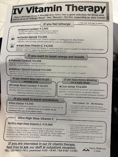 Read moreVisited Tokyo Midtown Clinic today, a Saturday. Stubbed my toe in the shower a week ago and was still experiencing some pain. Did not call in advance, just walked in.