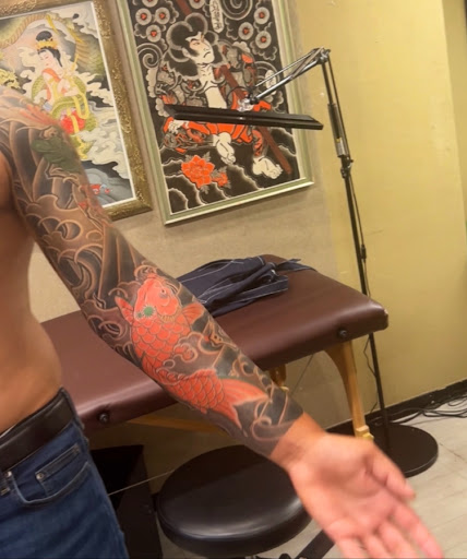 Day of tattoo I have selected Hide Ichibay as my artist due to his unique style and artistry. Ichibay is a laid back and down-to-earth person. From the start, he was friendly, welcoming, caring and personable, sharing his travel stories during the tattoo.