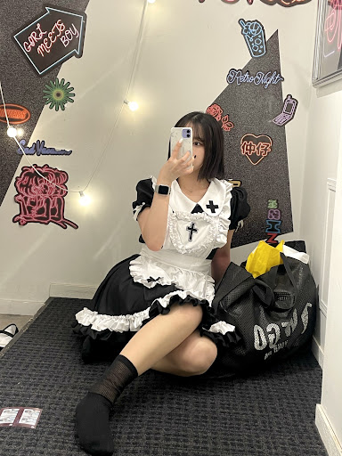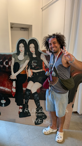 そしてこのお店のユニークさを一層際立たせるのが、店舗内の写真撮影スポットです。インスタ映えを意識した壁紙や小物が配置されていて、買い物の合間に写真を撮る人も多く見受けられました。私も思わず一枚パシャリ。この店舗限定のポップな背景は、SNSで注目を集めそうです。