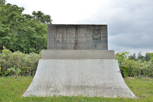 峠の頂上にあるパーキングで休憩しましたが、トイレも自販機も皆無。傍らには苫前村の村長だった新保福治氏の碑がありますが、碑文を要約すると、此の道路を造るにあたり尽力した方だそうで。眉間辺りにある損壊、うーん恐ろしいね。地域性ってやつだろか?絶対銃だよ。