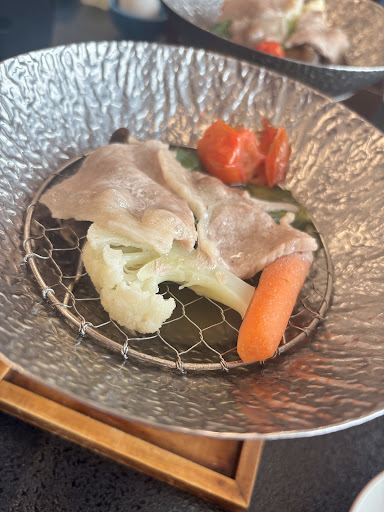 食事所はカーテンのようなもので仕切られており 個室とは言い難いようになっていました。 またごはんと味噌汁は自分で取りに行くシステムで半バイキングか?と感じました。 配膳をする時にごはんと味噌汁も持ってきてくださいと言えば持ってきてくれましたがそれなりの金額を取っているのに自分で取りに行かせるスタイルはいい感じはしません。 夜ごはんに刺身が出たのですが大きな一皿に二人分盛り付けてあり真ん中にどーんと置かれて食べにくかったです。 別々に盛り付けた方がいいと思います。