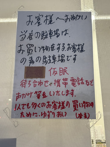 Read more仕事の途中で仕事の内容を確認したくて一時的には寄らせて頂いたのですが、ジロジロと車を見てくる男が目の前に居たのですが、1分ぐらいしてから制服を来て同じ男が私の車に向かってきて「仕事で使うなら駐車場からで行け」「出ていかないなら、警察呼ぶぞ」と怒鳴ってきて買い物しますけどと言うと、「じゃあ、さっさと買い物しろ」とものすごい言い方をされて、セブンの本部に苦情電話しました。知り合いに聞いたらオーナーだったんですけど、あんな人がオーナーとは最低ですね。みなさんも気おつけてくださいね?5分でも停まってたら言われますよ!!客をなめ...