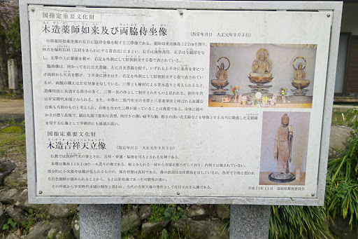 成田山青龍寺は真言宗醍醐派の寺院です。青龍寺の創建は和銅3年(710)、元明天皇の勅命により行基菩薩が開いたのが始まりと伝えられています。 以前は、浄光寺と称し、現在地から北西の山中にあったとされ源範頼(源頼朝の弟)を迎えるなど寺運が隆盛し大きな影響力を持っていました。その為、騒乱に巻き込まれる事が多く、天正9年(1581)の羽柴秀吉の因幡侵攻の兵火により焼失しました。 その後、現在地に移し草庵を設けて再興し、明治時代に入り千葉県の成田山新勝寺から不動明王を勧請し成田山青龍寺に改称し「因幡の成田山」として信仰を広げました。 青龍寺の前進と言われる浄光寺には、うさぎが天照大神の裾をくわえ仮の宮の聖地まで導いたという「城光寺縁起」を伝えており、本堂には福本白兎神社の本殿が移築されています。 青龍寺の寺宝である多聞天・持国天像は正安3年(1301)に仏師隆円が製作したもので持国天像は像高76cm、寄木造、彩色、彫眼、唐様の鎧、広袖の衣多聞天像は寄木造、彩色、彫眼、唐様の鎧、制作年代と作者が明確なことから彫刻史上大変貴重な存在で大正12年(1923)に国指定重要文化財に指定されています。