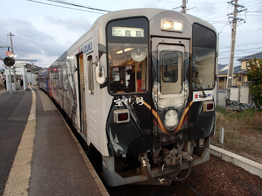 Read moreこの日は雪が積もっていました。 名探偵コナンのラッピング電車も走っています。 アニメのラッピング電車に乗りました。 鳥取駅からは、ひと駅です。 何度も利用しています。 無人駅です。 ICOCAの利用は出来ませんでした。 券売機もありません。 待合室があり、隣には綺麗なトイレがあります。 ホームにも、待合室があります。 車内で整理券を取り、出口の駅で支払うシステムでした。 周辺は、幹線道路、少し歩けば大きなスーパーマーケットや、 食事が出...