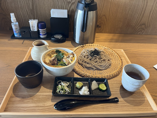 ざる蕎麦と親子丼セットに鴨、自家製プリンをいただきました。