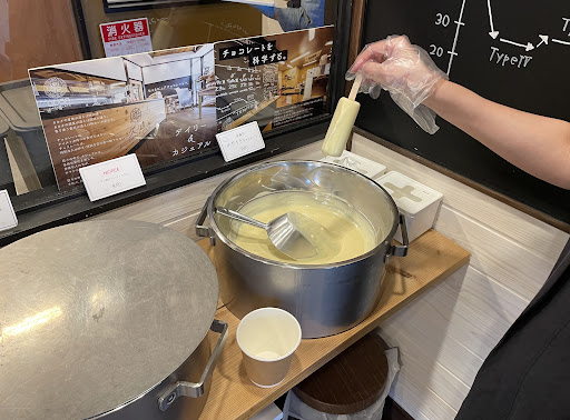 お会計をしていた時に、店内でアイスが売られていることに気づき、慌ててオーダーしました。 昔ながらのアイスキャンディーが出て来て、そのキャンディーをトロトロのチョコレートが入った容器に付けて、固まってからいただくタイプで、大好きなホワイトチョコをコーティング。 ずっと食べていたい、濃厚でまったりしたチョコで、中のアイスキャンディーのイチゴ味はもはやどうでも良くなる程美味しいホワイトチョコでした。