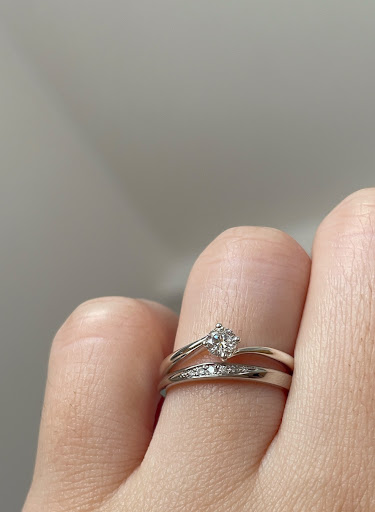 Read more昨日、指輪を受け取りに行かせて頂きました。 注文の時から、とても丁寧で素晴らしい対応をして頂き、本当にここで作らせて頂いて良かったと思っております。 受け取った指輪は、もちろん自分にピッタリのサイズで、注文通りのデザインで、想像以上に素晴らしかったです。デザインも、サイズも、指輪の太さも全部自分達で決めた通りで、それなのに一般のお店よりもお安いだなんて、本当に有難いです。 婚約指輪のダイヤモンドも、とてもクリアで虹色の輝きも見え、ずっと眺めていられます。注文の際に、ダイヤモンドのランクについて、この上はあまり変わらないけど、これより下になると急に見劣りすると仰っていた意味がわかりました。かけるべきところにお金をかける、ということができて、本当に感謝しております。 予想以上の品で、本当に一生の宝物になりました。 自分の友人達にも、ぜひここをおすすめしたいです。本当に...