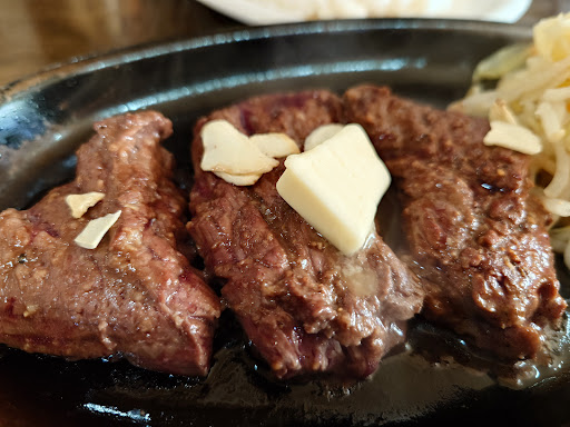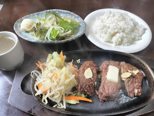 Read moreステーキ@1200(土日限定ランチ) ★★★☆☆~★★★★☆ 横隔膜(ハラミ)部位をミキサーにかけてギュッと固めたようなステーキ。 つまり繊維質(筋)を感じず、口に入れるとすごく柔らかい。 彦摩呂さんなら「この柔らかさ!ステーキのムースやぁ~」っと表現するかも? 言い方変えると成型肉と誤解されるかも ランチステーキは150gありましたが、柔らかさでスルッと食べれちゃうので食べ応えとしては物足りなさ感じます。 ライスのおかわりも有料なので 私は1200円が少し高く感じたため星★を減らしました。