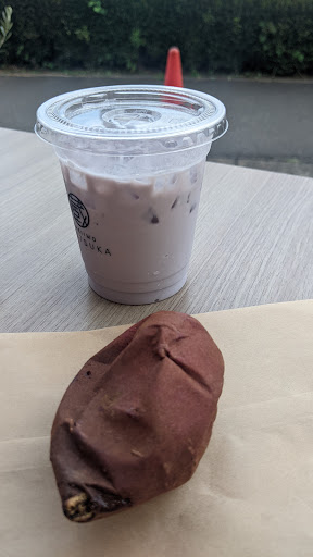 この日は閉店30分前にお店に到着したため カフェメニューのスイーツが終了しており ドリンクメニューのみとのことでした。 焼き芋ソフトクリームラテは焼き芋ラテに 焼き芋ソフトを乗せた豪華バージョン! 焼きソフトは優しい焼き芋の甘さとミルクの 相乗効果で間違いのない美味しさで 焼き芋ラテは甘さ控えめですがしっかり 芋感が感じられてクセになる味わいです!