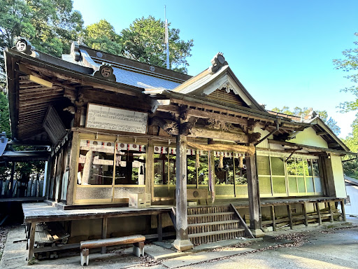 Read more日浦の北に吉野川の清流を見おろす山上に鎮座します。現在の本殿は1891年の建立で、天神七代・地神五代の神が祀られています。配置は、南向きに拝殿・幣殿・本殿と並び、拝殿・幣殿の右に直接社務所とつながっています。社殿の左側には合祀の社殿(拝殿・本殿)が並び鎮座します。本殿は1985に町文化財に指定。四方切目縁は三手先組物で受け、大斗間には彫刻や蟇股、床下の長押間には波の彫刻があります。また、身舎の斗組は二手先詰組出三斗とその上に出三斗と二段構えの造りで、腰組と同様に、直線的な和様肘木...