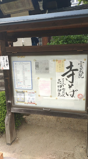 Read more2023/05/13 Google map上に「宝蔵院」と「宝蔵院 寺そば」とありますが、寺そばが頂けるのは「宝蔵院」の方です。京阪2番出口から右に出て、踏切と横断歩道を渡ってクランクの道を行った先にあります。ご注意を。 11時営業開始なのでそれ以前に行くと看板は出ていなかったと思います。 靴を脱いで境内へ。メニューは1択だが、季節で味付けが異なるようだ。数分の後、ラーメンが到着する。 薄口醤油味だが野菜出汁も美味しい。麺は中華麺だ。そして、香辛料...