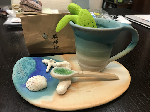 The pots here are a work of art! Made by a master of the craft of pottery! The colors are stunning! It is a must to come and buy souvenirs here when in Okinawa... in my opinion.