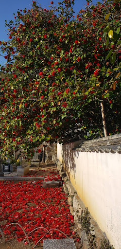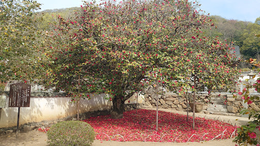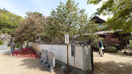 2021.4.8(木)八重の椿で有名な矢掛町は圀勝寺(こくしょうじ)に行って来ました。さすがは樹齢300年を超えると云われている椿だけであって。幹回りもさることながら樹高も高く立派な大椿の姿にびっくり。そしてその椿、深い緑の葉とは対照に真っ赤な八重の花を今を盛りと咲かせていました。勿論木の下には落花した真っ赤な花が絨毯の様に一面敷き詰められていて、それは見事な古木の姿が目に飛び込んできます。お寺の境内も良く清掃されていて、他色の椿も見る事が出来きるのですが、それぞれの木々の下には枯山水で表現される砂紋の箒目までもがあしらわれています。無住社寺の様にも見える中、ご住職をはじめ檀家の方々、更には地区の方々のこの大椿や弘法大師様もお祭りするこの圀勝寺を大切に思う強い思いもひしひしと伝わって参りました。丁度お世話役の様な方も見えられていて、今年は桜の開花同様に椿の開花満開状況も早かったらしく若干ピークは過ぎているとの事。それにしても見事な八重の椿を見る事が出来ました。境内には椿の他ソメイヨシノや大きなもみじ等も植えられていて、桜花には名残の花がありもみじは花を咲かせ新緑の葉も数多く出始めていました。機会があれば桜や秋の紅葉の頃にも訪れてみたいものです。駐車場は門前に4台程、裏側に10台程度、トイレも綺麗に整備されていまたした。ただ国道通りから上がってくる道は、狭い生活道路である為対向の車両等には注意が必要です。今年昨年と新型コロナ感染症の関係で、毎年4月第2土曜日行われていた椿祭りが開催でき無かったとの事。来年こそコロナ過も収束し、椿祭りも盛大に行われ、そして老弱男女多くの方に目出て貰えば大椿も嬉しいでしょうね、そんな日が一日も早く訪れ...