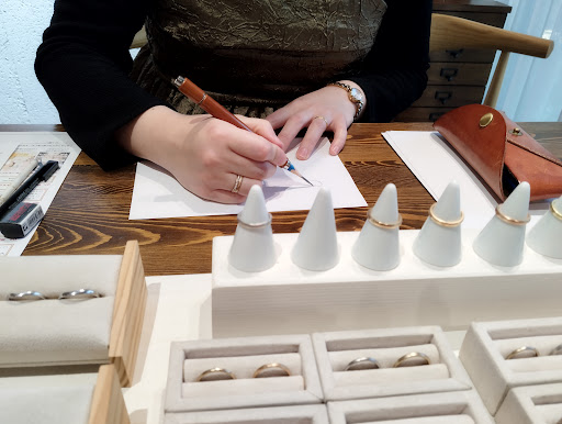 Read moreセルフメイドが体験できると聞いて、婚約指輪と結婚指輪を相談しに伺いました。 デザインの好みやどんなものが好きかなどを指輪の素材や既存のデザインを参考にしながら話したり、私たちの名前や誕生日などからもデザインを提案してくださいました。 2人で納得のいくデザインを作れて嬉しかったです。 また大型ジュエリーショップで既製品の見積もりを作っていましたが、私たちの場合は同じ金額かそれよりも下回る金額で素敵な結婚指輪に出会えてとても感動しました。 これから指輪が出来上がるのが楽しみです。 ---追記--- セルフメイドも終えて、指輪をお迎えすることができました。「予想を上回る満足感」というのがお迎えした時の感想です。 一組一組に誠意を持って接しているだろうと感じられる接客と、ただ指輪を作るだけではなく「2人の大切な思い出のひとつ」を得られることの出来る素敵な場所でした。 指輪だけでなくセルフメイド中の写真や完成した指輪の写真を撮ってくださっていて、しかもそれを頂けて、とても感動しました。 お迎え後にパートナーと車の中で話した会話では2人とも「ここを見つけて、ここに来て、本当に良かったね。」と話しました。 お店へ通う度にスタッフの皆さんが快く迎えてくれてすごく居心地が良かったです♪ ここで指輪が作れて本当に良かったです。...