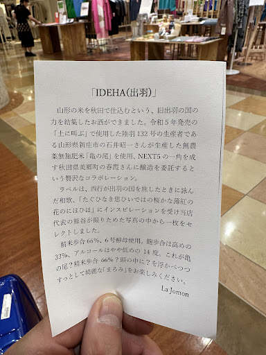 このお店でしか買えない限定のお酒を2本ほど購入。 お酒はこれから帰ってのお楽しみですが、 すでに口の中は美味しい日本酒の口になっている。 (買って良かった:満足)