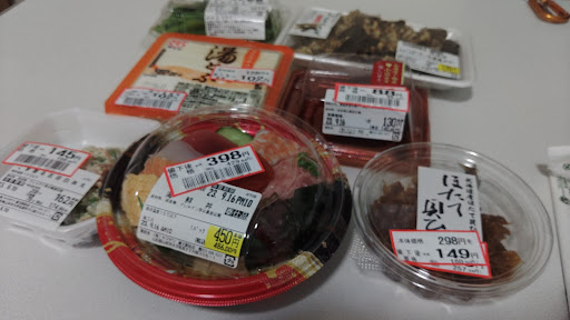 Read moreロードサイドの様な大きなスーパーとは違い、通常の生活でしたら此処で間に合う様な地元民優先的な小さな店ですが、結構重宝して居ります(笑)。小さいですが飲食場所も在り、学生さんが良く使われて居ます。 家庭で一寸した宴会も開ける様な品揃えもされて居て、日常でしたらほゞ此処で間に合うのではないでしょうか。今個人店を含め、こういった商店が消えているので、とても助かって居ります。 唯其の分駐車場は狭いので、雑な停め...