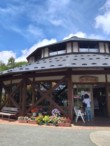 広い駐車場の割にはこじんまりとした施設。 木に囲まれて富士山や湖は見えません。