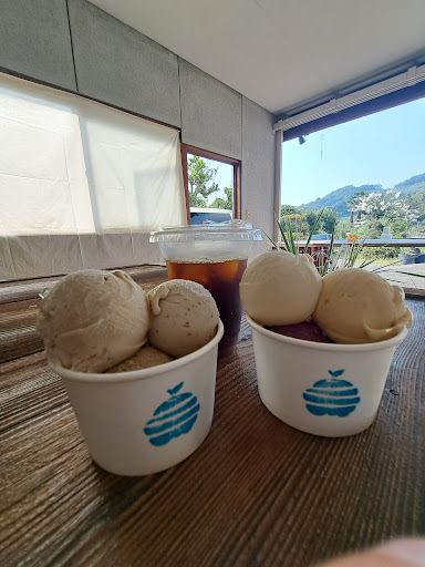 Read more子供と2人で行きました。ももとチョコレートのフレーバーと深煎りのアイスコーヒーをいただきました。さっぱりしているけどコクがありとってもおいしかったです。コーヒーも身体に染み渡り、田舎の景色を眺めながら美味しく楽しいひとときを過ごせました。子供も気に入ったみたいで、いろんなフレーバーを食べ比べて...
