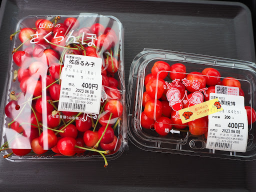 Read moreさくらんぼ!大容量パックの高砂(400円)と粒の大きい紅ゆたか(400円)を購入しました。どちらも美味しかったです🍒 JAや道の駅よりも安いです...