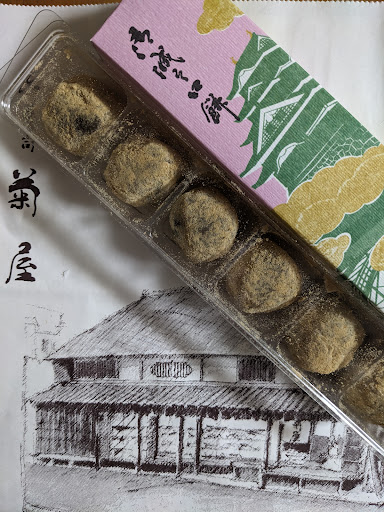 『御城之口餅』 厳選された北海道十勝産や丹波産の国産小豆のみを、蒸気で一気に炊き上げる今では珍しい大釜を使い 火力があるので炊き上げ時間が短く仕上がりの良い餡を 近江産の餅米をついたとろけるような餅で包み 国産青大豆のきな粉を纏い 一口サイズで食べやすく、とても美味しい和菓子です。