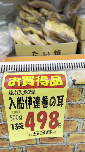 伊達巻きの切り落としなる商品を初めて見ました。福島ではメジャーですか?それが冷凍鯛焼きの段ボールに入ってガサっと売られている姿が面白かった😁