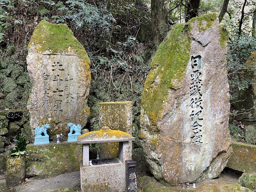 また、 天照大神と書かれた社の裏には、 岩戸隠れの形を模した、 岩谷に建てられた社があり、