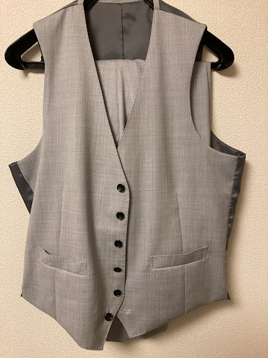 【後日談、追加】 スーツが出来上がりの連絡が入り、本日、受け取りました。 お!、なかなかの出来栄え。 早速、試着してみる、おー、イイ感じで腕が通る、脚もスムーズに通る。 着心地、シルエット、共に納得!。